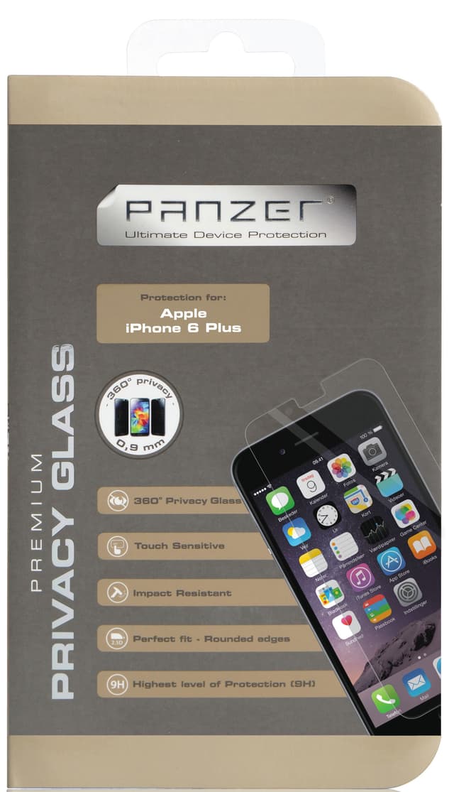 Beskytt din iPhone 6+eller 6S+ smarttelefon med dette solide tempererte Panzer glasset som ikke viser skjermens innhold til noen andre enn deg. Tykkelsen er på kun 0,33 mm.