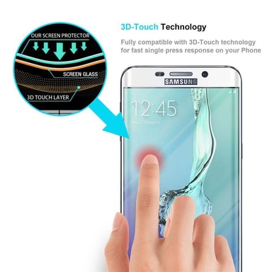 Skjermbeskytter for Samsung Galaxy S6 EDGE PLUS 9H-hardhet med 3D Touch-kompatibilitet. Perfekt beskyttelse for din mobiltelefon. Laget av spesialbehandlet glass. Beskyttelsesglasset forlenger levetiden til skjermenLes mer om produktet