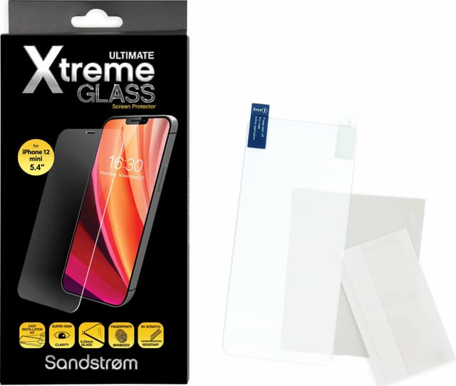 Sandstrøm Ultimate Xtreme Glass iPhone 12 Mini skjermbeskytter holder skjermen til smarttelefonen din fri for riper og fingeravtrykk. Den dekker hele skjermen uten å etterlate mellomrom eller luftbobler, og uten å påvirke berøringsfølsomheten.Les mer om produktet