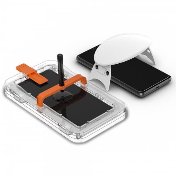 Platinum Tray fra Spigen har flytende lim som aktiveres av UV-lys, og 3D-glasset gir et varsomt dekke over skjermen. Touch-følelsen fra originalskjermen beholdes, og du kan også bruke fingeravtrykksensoren som vanlig.