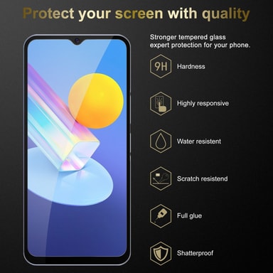 Det herdede glasset beskytter skjermen på mobiltelefonen din. Det er laget av spesialbehandlet glass for å beskytte skjermen optimalt mot riper og fall.