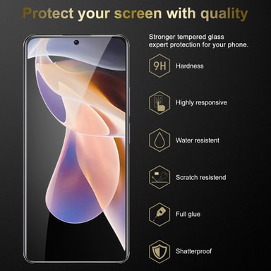 Det krystallklare beskyttelsesglasset er ripebestandig og forlenger skjermens levetid, selv ved fall.