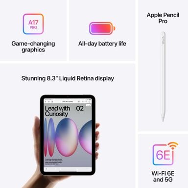 Nye Apple iPad mini er et kompakt kraftverk med A17 Pro-chip, utviklet for å forbedre alle aspekter av ditt digitale liv. Nå med støtte for Apple Intelligence og Apple Pencil Pro, for uovertruffen kreativitet på farten.Les mer om produktet
