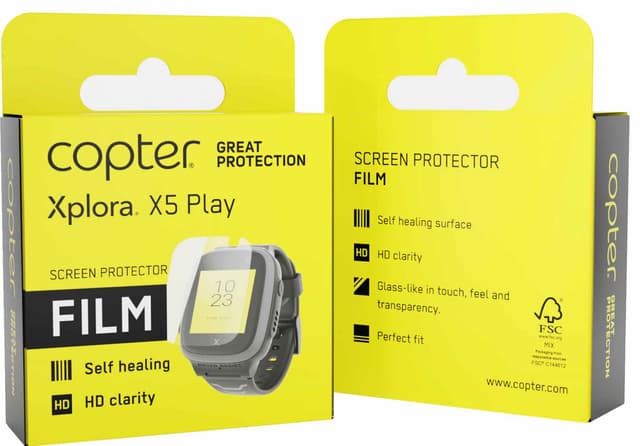 Copter Xplora X5 Play skjermbeskytter er et usynlig belegg som er lett å feste på smartklokken til barnet ditt, den holder skjermen beskyttet mot skraper som kan oppstå mens de leker eller er ute. Skjermbeskytteren er behagelig å berøre og bevarer sensitiviteten på skjermen.