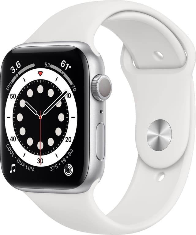 • Apple Watch Series 6 44mm GPS (sølv alu/hvit sportsreim)