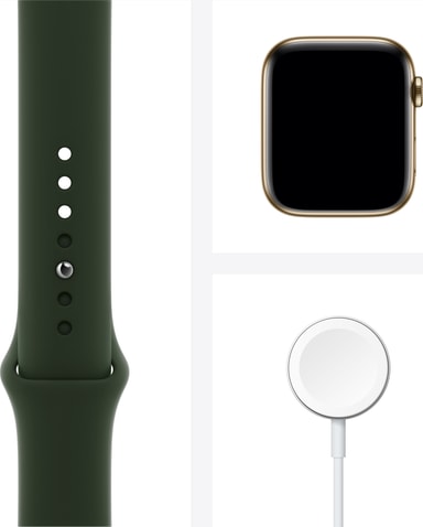 Apple Watch Series 6 44mm GPS+4G LTE (gullfarget stål/grønn sportsreim)