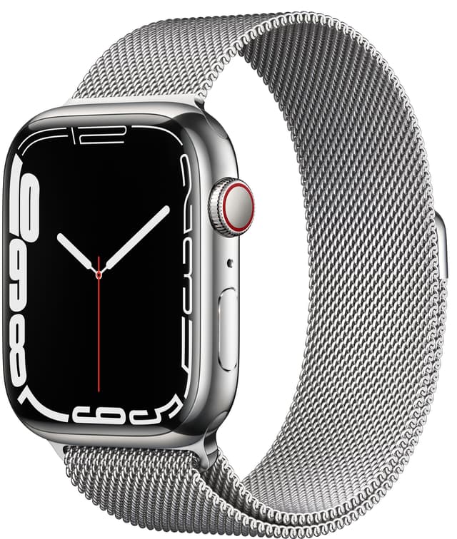 • Apple Watch Series 7 45mm GPS+eSIM (sølvfarget stål/sølvfarget Milanese-reim)