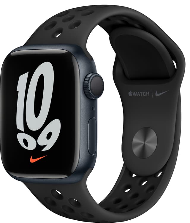 • Apple Watch Series 7 Nike 41mm GPS (midnatt alu/antrasittsort sportsreim)