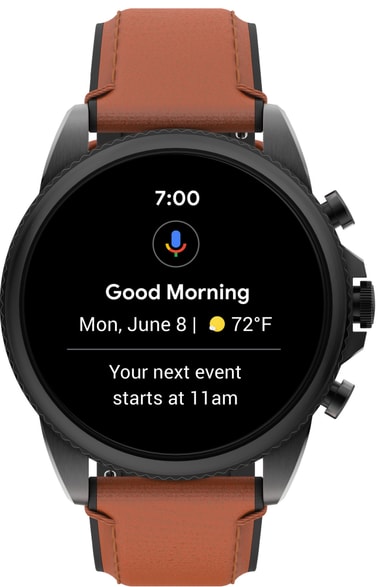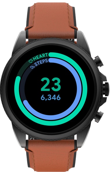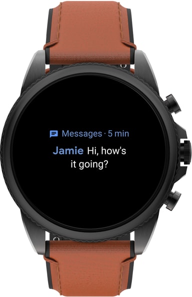 Fossil Gen 6 tilbyr en rund, farget touchskjerm med urskiver du kan endre på og velge selv. Den lar deg sjekke telefoner, e-poster, tekstmeldinger, notifikasjoner fra apper og sosiale medier, kalender og alarmklokke.