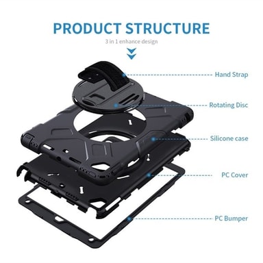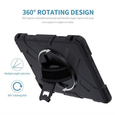 Kraftig, slagsikkert, robust beskyttelsedeksel i tre lag for Apple iPad 10.2 (2019) med håndreim, kick-stativ og penneholder