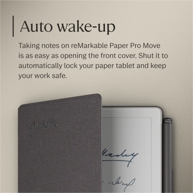 reMarkable Paper Pro Move Mosaic Weave Book Folio sørger for at din reMarkable Paper Pro Move er beskyttet på stilfullt vis samtidig som den forbedrer arbeidsflyten din. Dekselet festes magnetisk til enheten og har plass på siden til din reMarkable Marker.