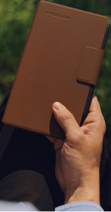 De innebygde magnetene holder reMarkable Paper Pro Move sikkert på plass. Magnetene er sterke nok til å holde enheten, men gjør det samtidig enkelt å ta den ut når du trenger det, noe som gir både sikkerhet og brukervennlighet.