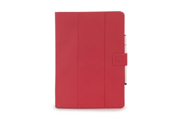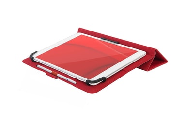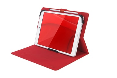 Universelt etui for nettbrett på opptil 11 tommer med magnetisk lukking og internt stativ, laget av mykt og økologisk skinn som er behagelig å ta på. Interiør med tre silikonhjørner, én fast og to som kan tilpasses størrelsen på nettbrettet.