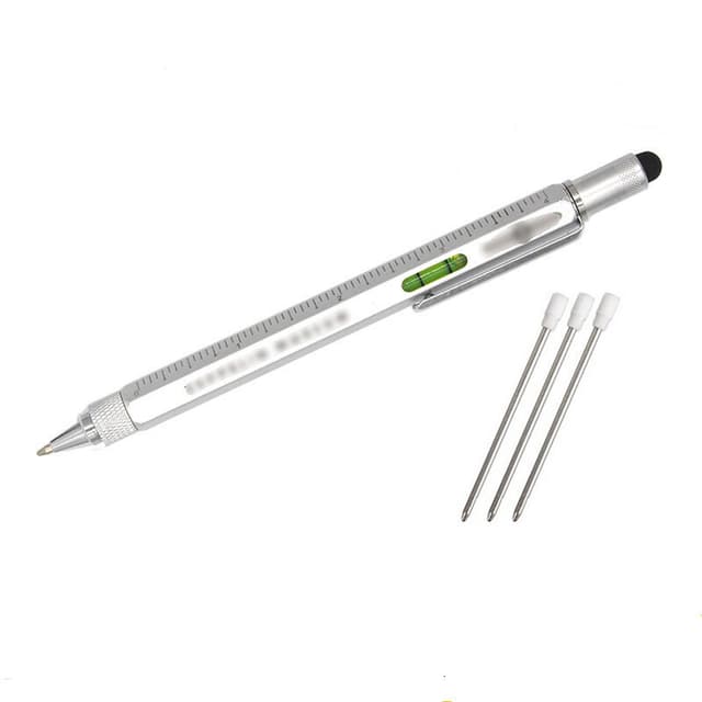 Multifunksjonell Stylus Pen: Dette multiverktøyet er en kulepenn, linjal, vater, skrutrekker og pekepenn i ett.