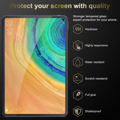 Beskyttelsesglass for Huawei MatePad PRO (10.8 tomme) 9H-hardhet med 3D Touch-kompatibilitet. Perfekt beskyttelse for din mobiltelefon. Laget av spesialbehandlet glass. Beskyttelsesglasset forlenger levetiden til skjermenLes mer om produktet