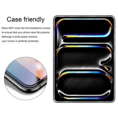 Beskyttelsesfilmen i herdet glass er 0,3 mm tynn og gjennomsiktig, med silikonkomponenter på den ikke-klebende siden slik at fingrene glir bedre på skjermen. Skjermens fargeekthet er fortsatt garantert.