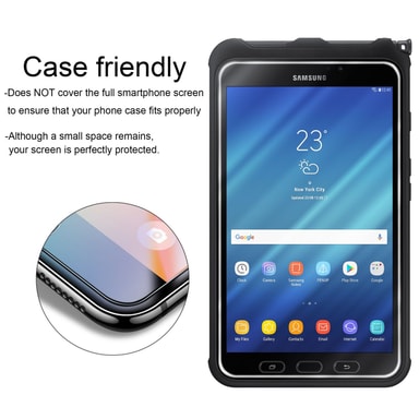 Beskyttelsesglass for Samsung Galaxy Tab Active 9H-hardhet med 3D Touch-kompatibilitet. Perfekt beskyttelse for din mobiltelefon. Laget av spesialbehandlet glass. Beskyttelsesglasset forlenger levetiden til skjermenLes mer om produktet