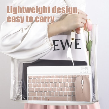 • Bluetooth-tastatur og -muskombinasjon - 10-tommers oppladbart trådløst tastatur- og musesett med etui (rosa)