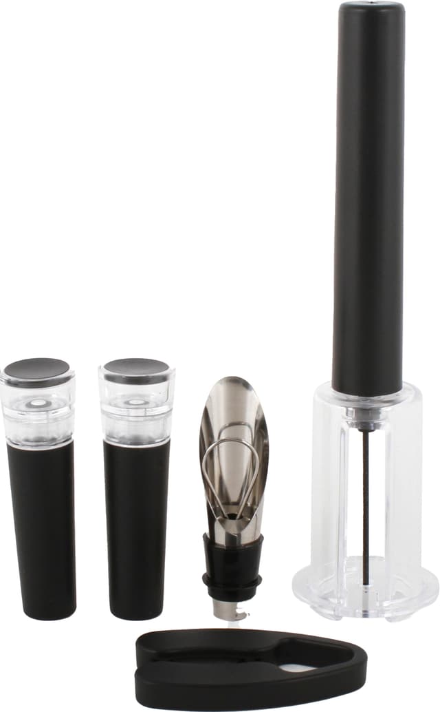 A Home Premium vinsett er et must hvis du ønsker en perfekt vinopplevelse. Dette alt-i-ett-settet består av en vinåpnepumpe for enkel åpning, en foliekutter for presisjon, en helletut for enkel sjenking, og en vakuum-stopper for å bevare vinens ferske smak. Dette settet er perfekt for enhver vinelsker, og gir en praktisk, stilren, og funksjonell måte å nyte vinopplevelsne din på. Settet er laget av rustfrittstål og plast, har nydelig innpakning, og er et utsøkt gavevalg.
