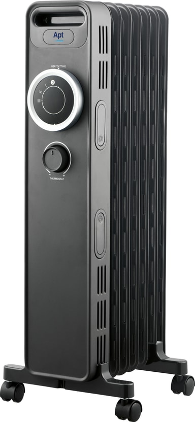 Apt Therma oljeradiator 1000W gir jevn, stillegående varme med 5 lameller for effektiv romoppvarming. Den har 3 effektnivåer, justerbar termostat, velte- og overopphetingsbeskyttelse, samt ledningsoppbevaring for et trygt og praktisk design.Les mer om produktet