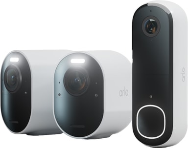 Arlo Pro 5S overvåkningskamera og Arlo 2K videodørklokke-sett gir deg skarp 2K-video, fargenattsyn, og toveis lyd for tydelig kommunikasjon. Med bevegelsesvarsler, innebygde sirener, og værbestandig design, for pålitelig beskyttelse.Les mer om produktet