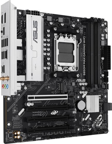 ASUS B850M MAX Gaming Wi-Fi hovedkort er et microATX-hovedkort som er bygget for AMD AM5-prosessorer og bruker AMD B850-brikkesettet. Det er kompakt, kraftig og perfekt for spilloppsett med begrenset plass.Les mer om produktet