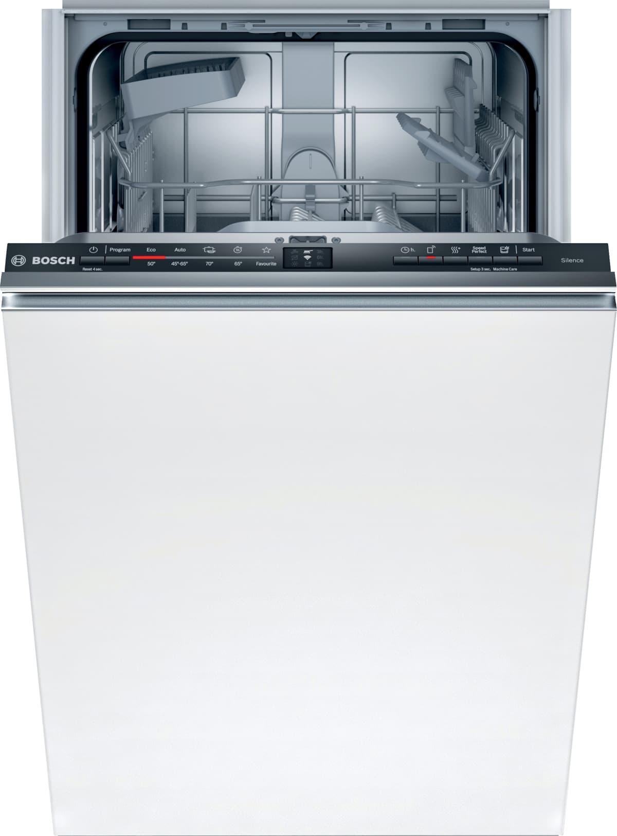 Bosch SPV2IKX10E oppvaskmaskin: Elegant full integrering med 9 innstillinger, 5 programmer, Home Connect og hviskestille 48dB drift.Les mer om produktet