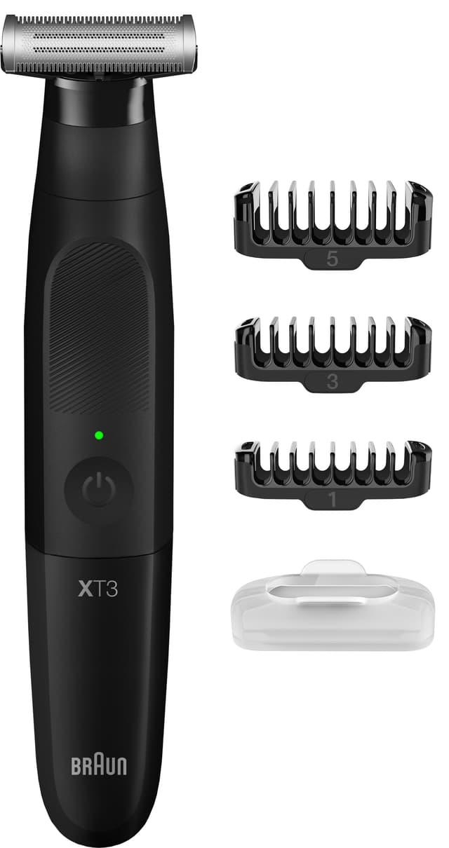 Med Braun Series XT3100 skjeggtrimmer 431558 er det enkelt å trimme skjegg og kroppshår i dusjen. Denne trådløse trimmeren medfølger 3 stk. tilbehør. 4D-bladene med fire barberingssoner gir en jevn barberingsopplevelse til hele kroppen.Les mer om produktet