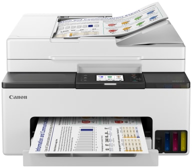 Canon MAXIFY GX2050 color inkjet 4-i-1 skriver tilbyr utskrifter, skanning, kopiering, og faks. Med en 6,9 cm LCD-touchskjerm, kan du enkelt navigere gjennom skriverens funksjoner. Den har en 35-arks ADF for å håndtere dokumenter med flere sider.Les mer om produktet