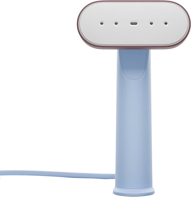 Klesdamperen har et elegant og minimalistisk design med intuitive knapper som gjør den enkel å bruke. Den kompakte størrelsen gjør apparatet portabelt, og det roterende hodet er ideelt for selv vanskelige plagg. Den kan stå oppreist eller legges flat for praktisk oppbevaring i kofferter.