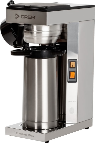 Crem ThermoKinetic Thermos M 2.2L er en fleksibel kaffetrakter med manuell vannpåfylling. Den lar deg brygge kaffen direkte gjennom lokket på en 2,2-liters termoflaske. Dette gjør det lett å servere kaffen umiddelbart.Les mer om produktet