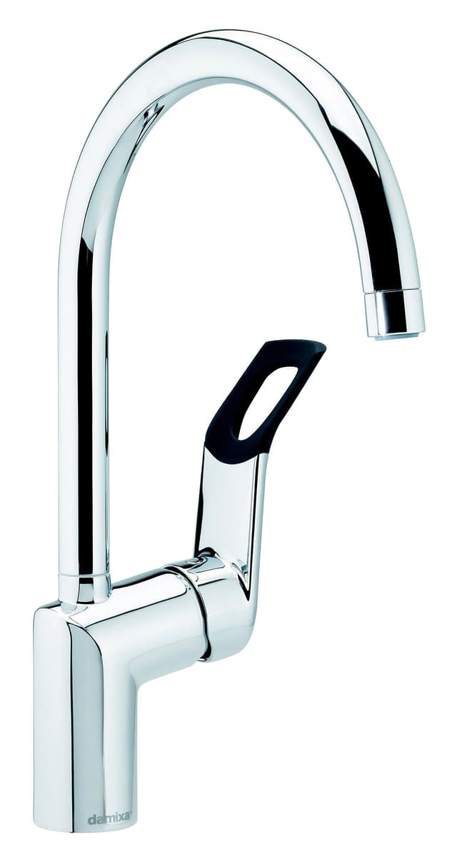 Damixa Clover Easy er et moderne blandebatteri i krom. Blandebatteriet kan dreies 120 grader og leveres med Soft-Pex tilkoplingsslanger for enkel montering. Det solide håndtaket har et gummibelegg noe som gjør blandebatteriet egnet for mennesker med nikkelallergi. Høy C-tur gjør at du enkelt kommer til med store kjeler og vaskebøtter.