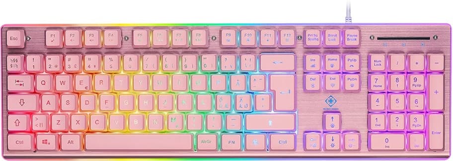 Deltaco PK75 gamingtastatur kombinerer membranbrytere, 25-tasters anti-ghosting, 125 Hz pollingfrekvens og RGB-belysning for å gjøre spilløktene dine mer behagelig. Det slitesterke ABS-kabinettet med aluminiumsplate gjør dessuten tastaturet robust.Les mer om produktet