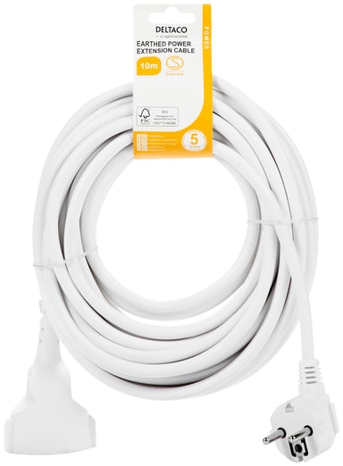 Deltaco skjøteledning GT-0902 med 1 stk. CEE 7/3- og 1 stk. CEE 7/7-kontakt har en 10 m lang hvit kabel og et barnesikret design.Les mer om produktet