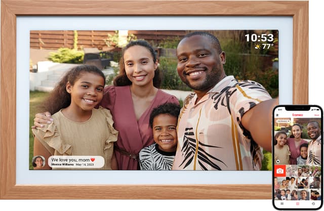 Del historiene dine med dine kjære enklere og raskere enn før. Bare ta et bilde og skriv en melding som vises på fotorammen med bildet ditt. Du kan også skrive en bildetekst for å sette en scene og la venner og familie vite hva du driver med. Etter å ha lastet ned Frameo-appen, kan du sende favorittbildene dine direkte til fotorammen fra bokstavelig talt hvor som helst.