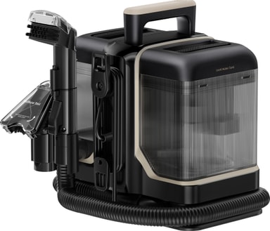 Den kompakte flekkfjerneren har gjennomsiktige vanntanker, slik at du enkelt kan overvåke vannivået og vite når du må fylle på eller tømme dem. Trappebørsten, multiverktøyet og EasyGlide-verktøyet er praktisk oppbevart rundt maskinen for enkel tilgang.