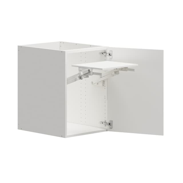 Oppbevar kjøkkenmaskinen på en praktisk måte i benkeskapet ditt og bruk denne uttrekksfunksjonen til å løfte den opp i ergonomisk høyde slik at den går kant i kant med benkeplaten. Når maskinen ikke er i bruk kan du gjemme den inn i skapet igjen. Monteres i 50 cm benkeskap. Tåler en vekt på 15 kg.