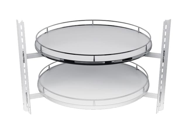 Karusell til hjørneoverskap uten midtstag, som gir god oversikt og tilgang til de roterbare hylleplanene.Les mer om produktet