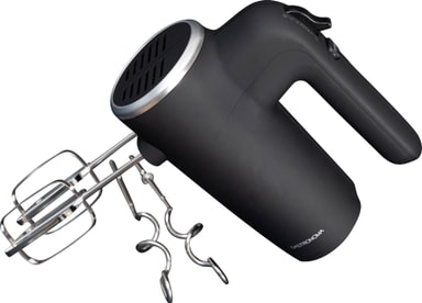 Håndmikseren kommer med en haug med tilbehør som gjør livet lettere på kjøkkenet. Vispsettet og deigkrokene gjør oppgavene dine enklere, mens holderen gjør det enkelt å oppbevare dette tilbehøret etter bruk.