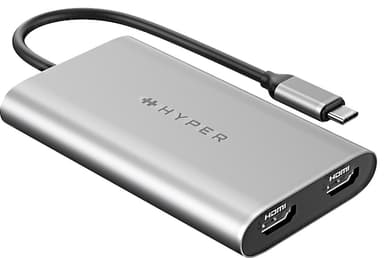 Koble til to skjermer samtidig med Hyper HyperDrive dobbel HDMI USB adapter, som kommer med to HDMI-videoutganger med 4K-oppløsning. Én HDMI-port gir mulighet for 60 Hz oppdateringsfrekvens, mens USB-C gir 100 W-strømforsyning.Les mer om produktet