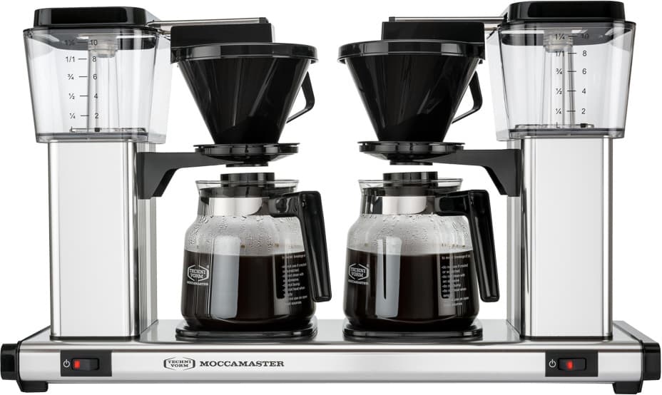 Moccamaster Manual Double kaffemaskin 59255 vil du alltid ha en kanne med rik, aromatisk kaffe tilgjengelig. Takket være maskinens raske tilbereding og dobbel kapasitet, kan du tilberede opptil 20 kopper med fersk kaffe på mindre enn 6 minutter.Les mer om produktet
