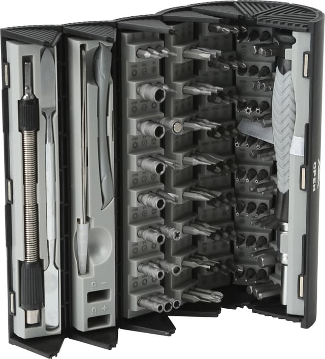 Med Nano Tools Ultimate sett har du alle nødvendige verktøy for å reparere enheter som telefoner, bærbare datamaskiner, nettbrett, wearables og mer. Settet inneholder et 126-biters alt-i-ett-sett med skrutrekker inkludert i pakken.Les mer om produktet