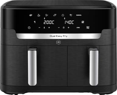 OBH Nordica XXL Dual Easy Fry airfryer AG9428S0 på 2700 W har en kapasitet på 11 liter, to kurver, åtte innstillinger og syv programmer. Det digitale displayet lar deg styre hver kurv uavhengig av hverandre for effektiv tilberedning.Les mer om produktet