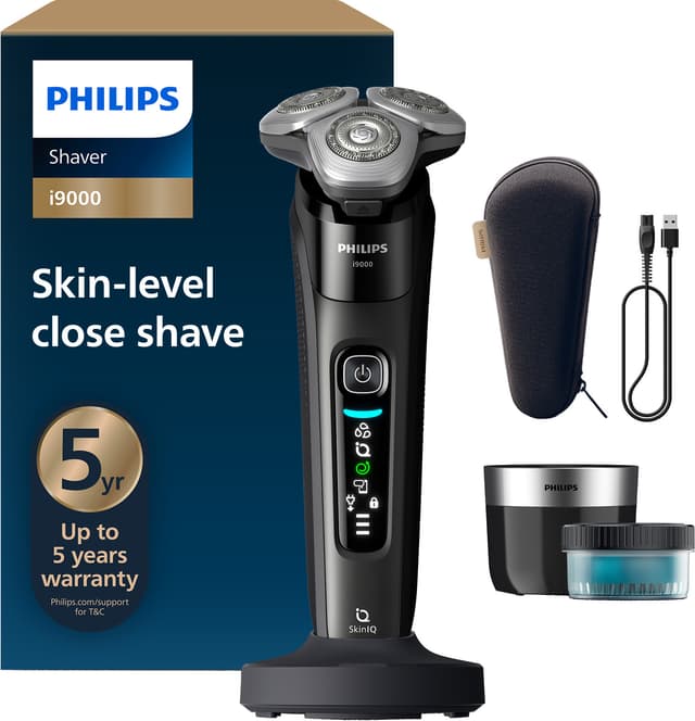 Med Philips i9000 barbermaskin X9000/30 er du sikret en tett barbering. Triple Action Lift & Cut og 360° Flexing-hoder håndterer enkelt områder som er vanskelige å barbere. KI-drevet SkinIQ-teknologi tilpasser seg huden din for komfort og presisjon.Les mer om produktet