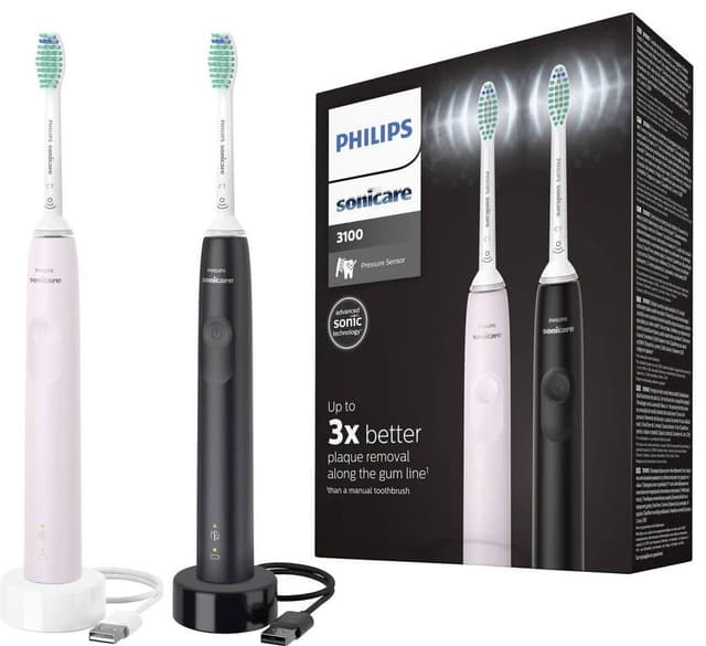 • Philips Sonicare 3100 elektrisk tannbørste 2-pk. HX367515 (rosa/sort)