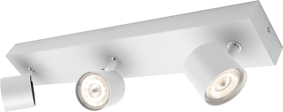 Philips Star spotlys 13,5W GU10 gir jevnt, hvitt lys til soverommet, stuen eller gangen. Spotlyset har elegant design med tre justerbare hoder og ClickFix-montering.Les mer om produktet