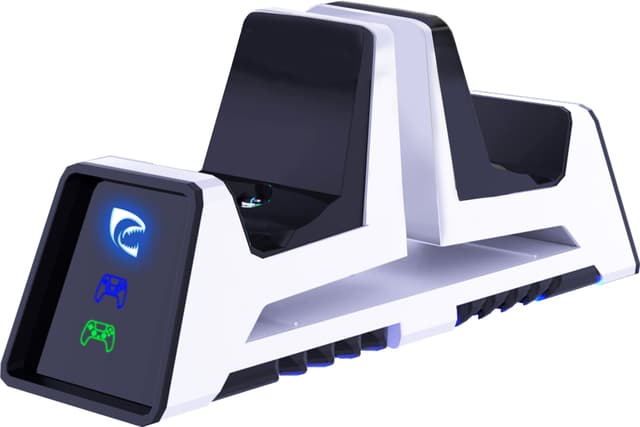 Piranha x GhostGear PlayStation universallader er en dobbel ladestasjon for kontrollere som er kompatibel med PS5 og PS4. Har magnetiske induksjonsplater og LED-indikatorer for ladestatus for å effektivisere spilloppsettet ditt.