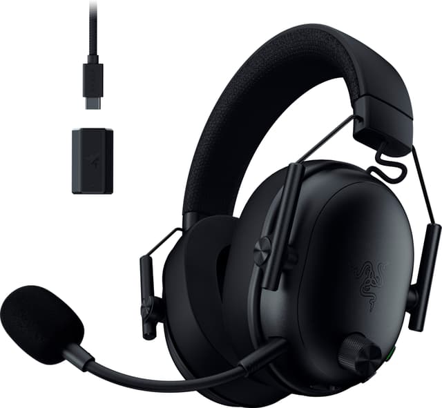 Razer Blackshark V3 trådløst gaming-headsett tilbyr allsidig tilkobling med 2,4 GHz, Bluetooth 5.3 og USB-C, som sikrer samtidig tilkobling på tvers av flere enheter. Fordyp deg i favorittspillet ditt med Next-Gen Razer TriForce Titanium 50mm-drivere og THX Spatial Audio for en virkelig oppslukende lydopplevelse. Den avtagbare Razer HyperClear Full Band 9,9mm-mikrofonen og det ergonomiske designet gjør headsettet ideelt egnet for lange spilløkter.