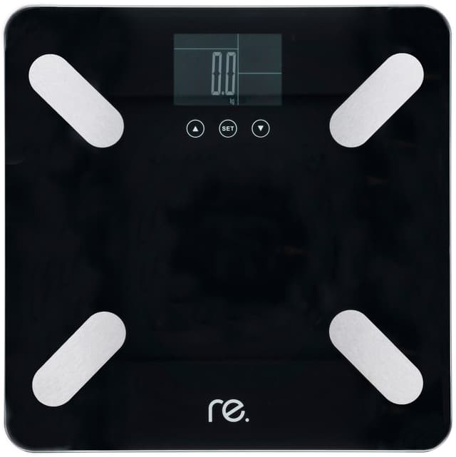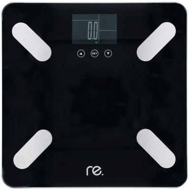 re. smart baderomsvekt 180har en kapasitet på 180 kg, måler BMI og prosentandel av kroppsfett, muskelmasse, vann og beinmasse, og har i tillegg en automatisk av og på-funksjon. Hold deg i god form takket være. denne brukervennlige baderomsvekten.
