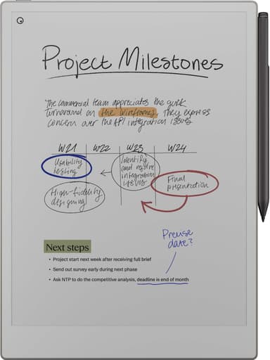 Hold oversikten over arbeidet ditt samtidig som du har alle notater på ett sted takket være reMarkable Paper Pro E-ink nettbrett med Marker Plus, som gir deg en papirlignende følelse. Ta notater og les PDF-filer og dokumenter uten distraksjoner.Les mer om produktet